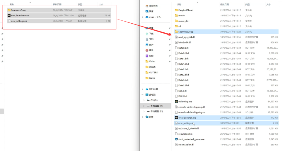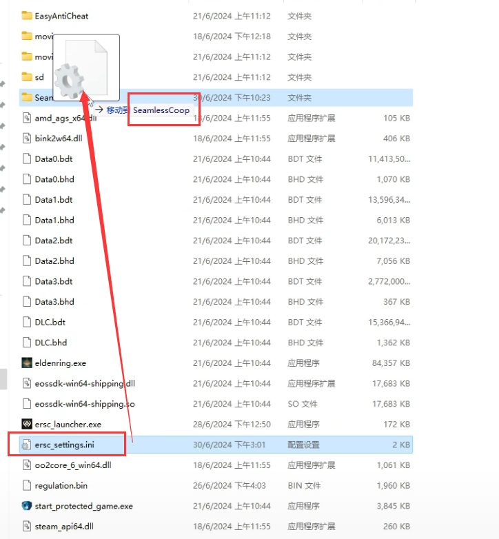 然后将名为【ersc_settings.ini】的文件移动到【SeamlessCoop】文件中
