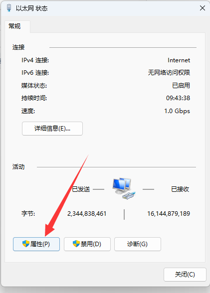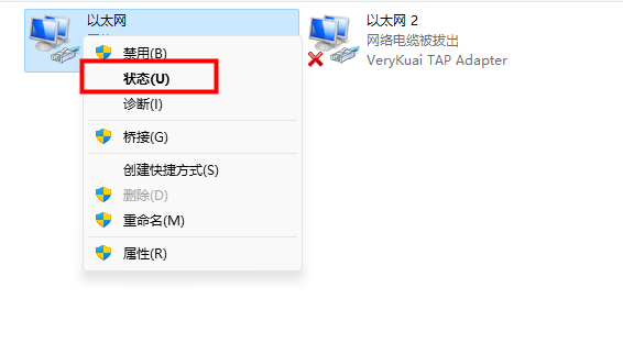进入网络设置,右键以太网,点击状态