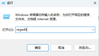 按WIN+R打开运行窗口,输入”regedit”,回车确定打开注册表