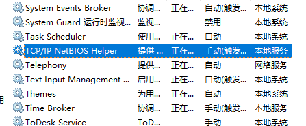 TCP/IP NetBIOS Helper :启动类型:自动;服务状态:正在运行