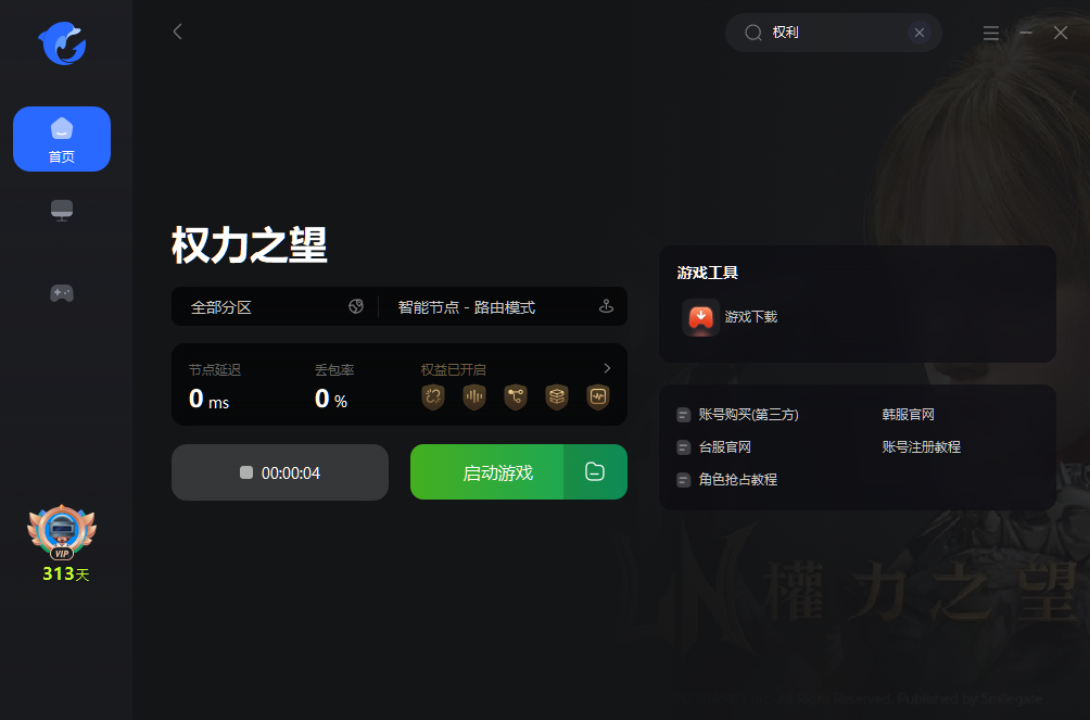 权力之望游戏下载教程 2024-07-08 1.打开海豚加速器,搜索【权力之望】开启一键加速,并点击右侧【游戏下载】一键下载游戏; 2.点击浏览选择安装路径后确定; 3.下载完成后打开STOVE客户端安装程序选择中文进行安装; 4.选择安装位置后点击继续; 5.进入“STOVE”客户端的安装; 6.下载完成以后登录账号,如果没有STOVE账号需要先注册一个。>>注册教程 7.登录进入在STOVE客户端左上角下载游戏即可。