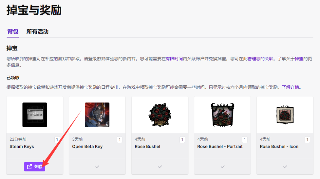 登录成功后点击绑定twitch,登录刚刚挂了掉宝的账号进行绑定