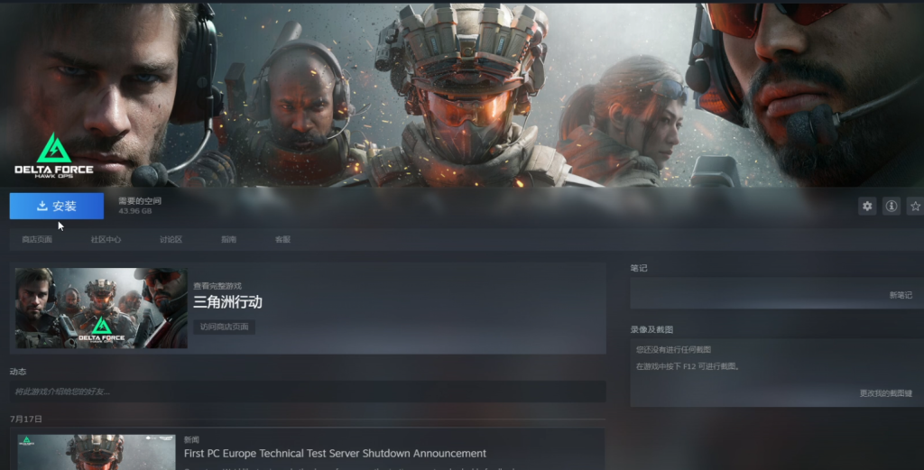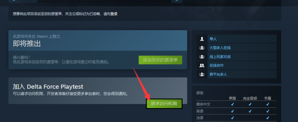 前往Steam申请测试资格,在Steam中搜索【三角洲行动】即可找到游戏