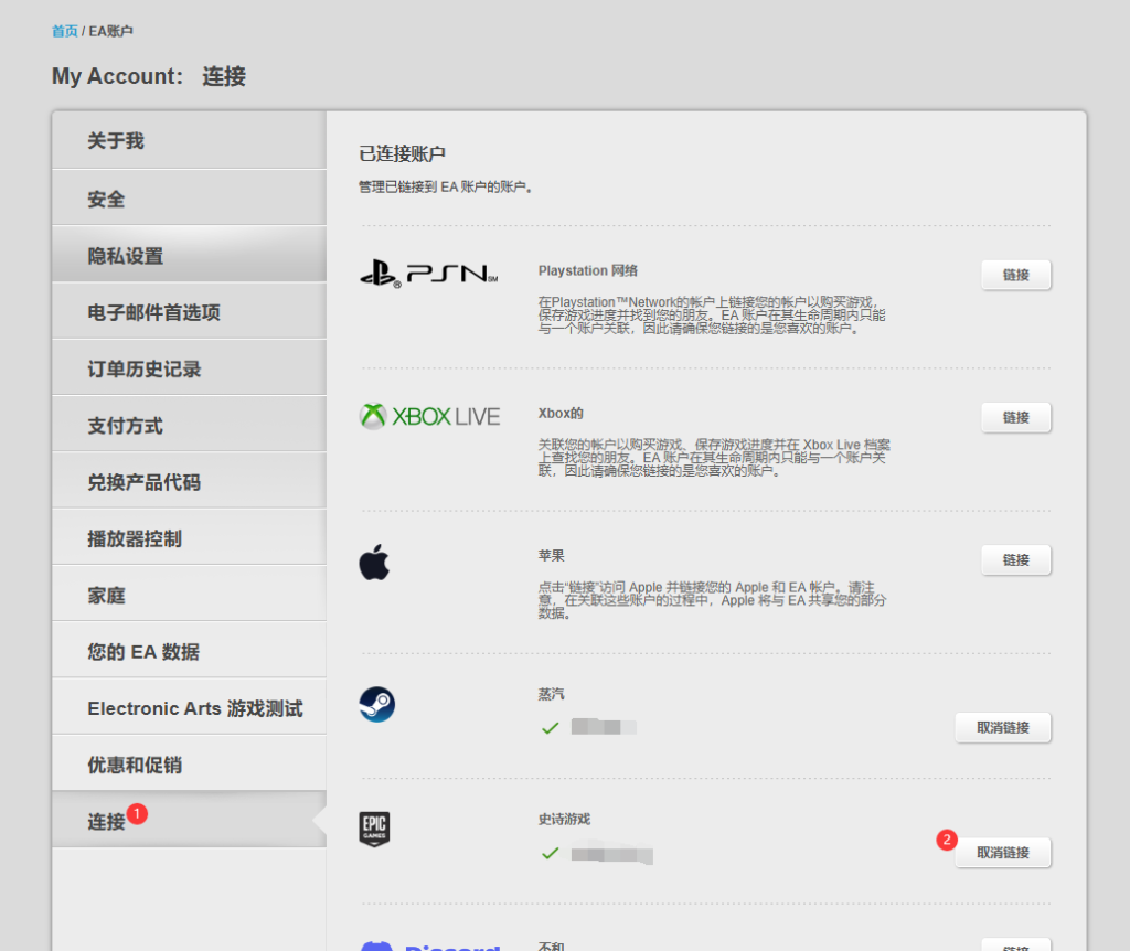 跳转至账号绑定页面,显示有Epic就代表绑定成功了~