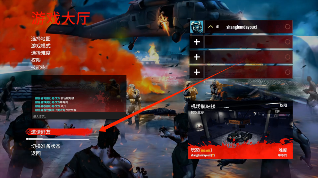进入房间内,在这里可以邀请Steam还有,以及设置一些房间规则,局内设置等!