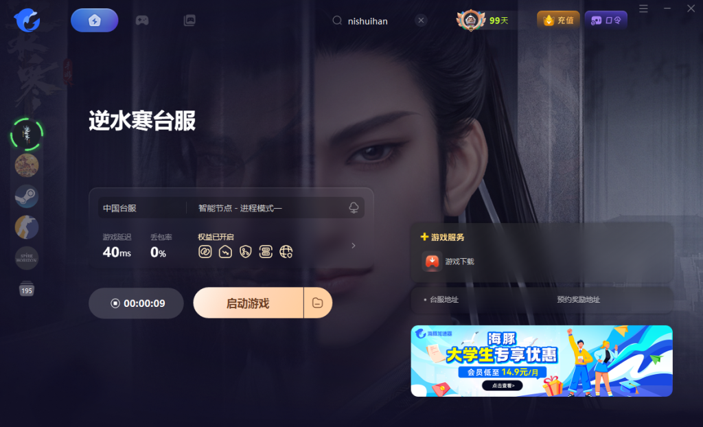 - 使用海豚加速器,搜索并加速【《逆水寒》台服】来优化网络环境。