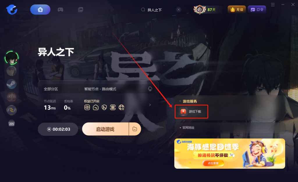 或者也可以直接点击海豚加速器,右侧的游戏下载,即可一键高速下载游戏客户端!