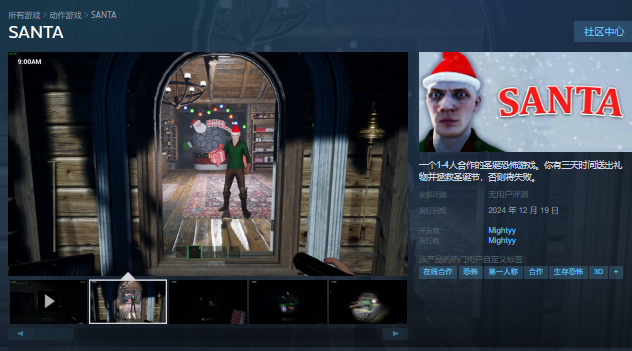游戏目前有免费试玩版本可供下载,仅需在Steam商店搜索【SANTA】,就能够下拉点击下载试玩!