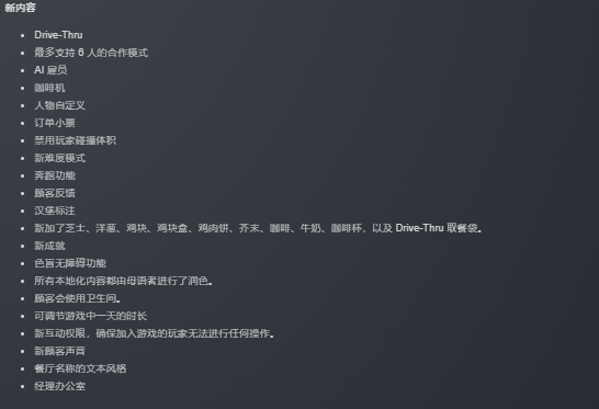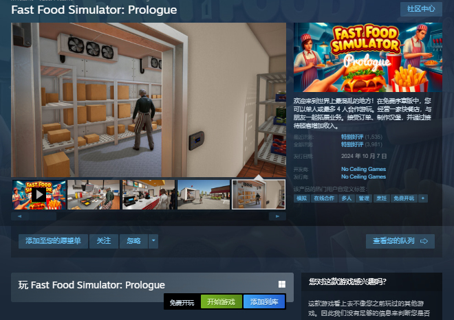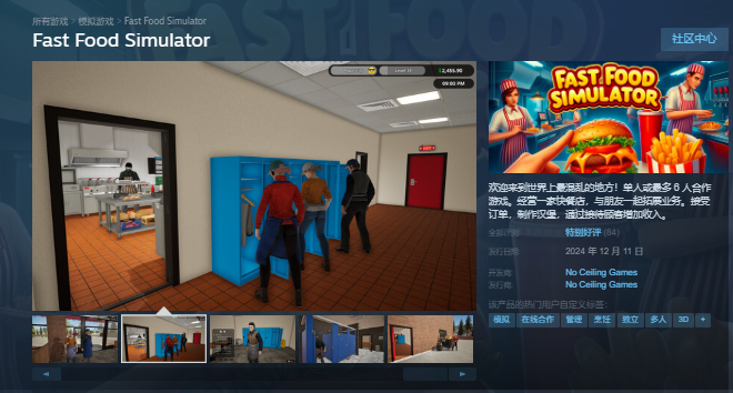 这是一款快节奏的模拟经营游戏,由 No Ceiling Games 开发。游戏让玩家化身快餐店员工,通过合作或单人模式体验从开店到制作食品的完整流程。在此之前相信不少玩家已经游玩过游戏的序章了!