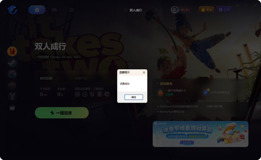 《双人成行》隐藏关卡开启方法及注意事项 2024-12-16 1.在海豚加速器搜索双人成行并点击【一键开启隐藏关卡】; 2.进入游戏后,随便选一个关卡进入并按暂停键,点击第一个乱码; 3.进入这个页面后,先选择第一列第三个,再选第二列第一个,点击之后就可以进入隐藏关卡啦~;
