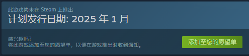 目前该游戏在steam给出的上线时间为明年1一月份!将在Steam正式发售!