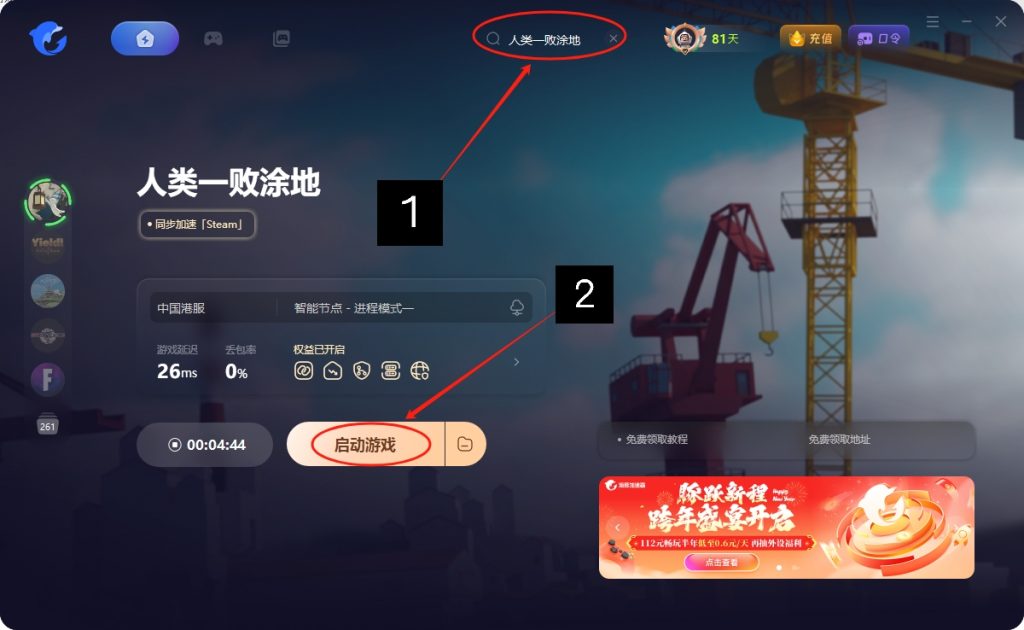首先由于部分玩家可能会出现网址无法打开的问题,使用海豚加速器,搜索【人类一败涂地】,进行网络环境优化即可成功加载网页!