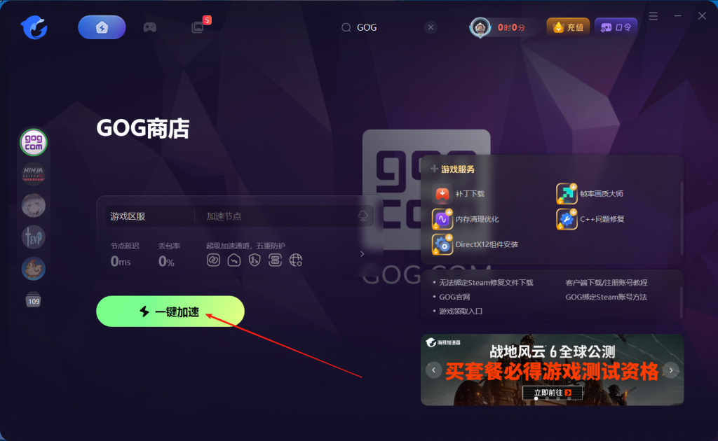 GOG喜加13教程 2025-08-04 1. 打开海豚加速器搜索GOG商店,选择【巴西服】【巴西服】【巴西服】并开启一键加速; 请加入对应地区【巴西服】避免报错 2. 前往>>游戏领取地址;虽然是乱码但是不影响,请继续根据教程操作! 3. 再刚刚乱码的网址输入 【http://www.gog.com/card/add/1486951595】,看到购物车显示0变为1就表示成啦! 4. 点进购物车,登录您的GOG账号,如果没有可以自行注册一个;>>查看注册教程 5. 直接进行结算即可成功入库!