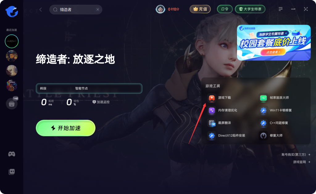 游戏下载教程 2025-10-21 1.使用加速器加速游戏,并点击【游戏下载】按钮下载游戏平台 2.启动安装程序 3.安装完毕后启动 4.登录经过认证的韩国账号,进入后点击游戏安装 5.等待下载完成,即可进入游戏。