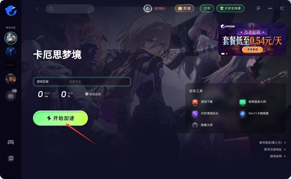 2.进入游戏区服选择页面,等到页面最左下角出现【Ready】字样后,点击右侧小齿轮按钮