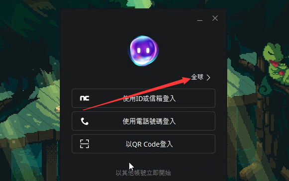 安装完成后打开Purple客户端,将右上角“区域”更改为【全球】。