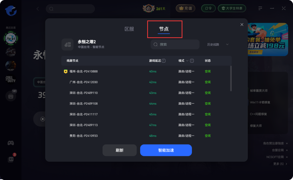 - 正确加速对象:在加速器中搜索“永恒之塔2(台服)”并进行加速,而不仅仅是加速游戏。确保加速器对平台客户端和官网的访问也进行了优化。