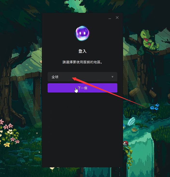 - 打开Purple客户端,务必先在右上角将“区域”切换为 【全球】。