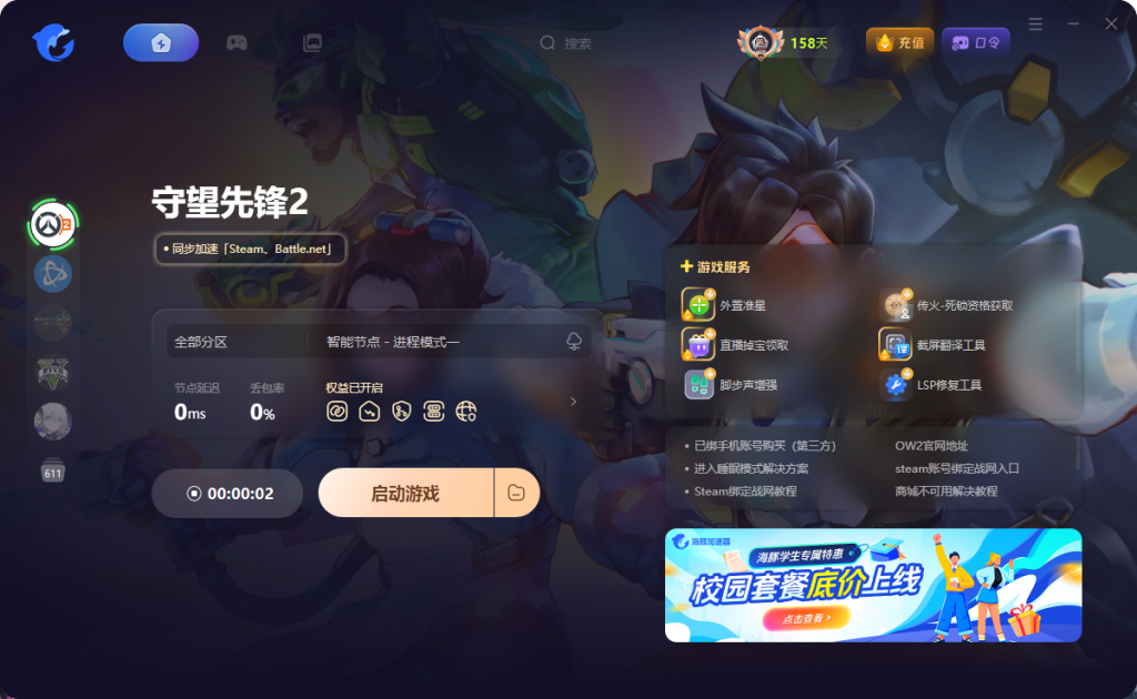 首先打开海豚加速器,搜索【守望先锋2归来】并加速,加速后点击Steam绑定战网入口进入(绑定过程中建议全程使用海豚加速器加速哦,避免账号绑定连接失败)