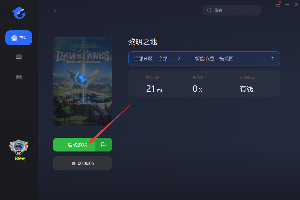 只需要在海豚加速器中搜索【黎明之地】并点击加速,加速后点击启动游戏就能进行一键入库下载游戏。