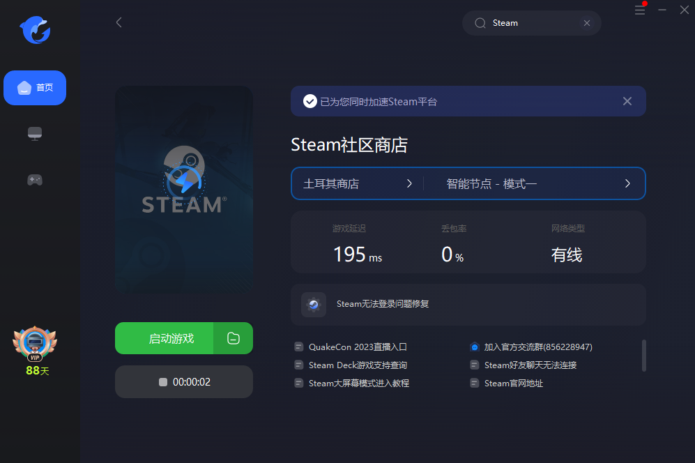 直播进不去的玩家只需要开启海豚加速器加速Steam即可正常观看领取,在观看直播时记得登录Steam以确保获得奖励!