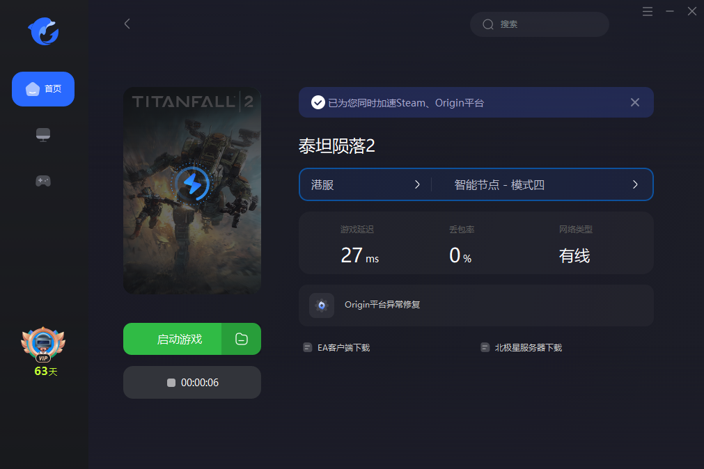 在设置游玩游戏前可以使用海豚加速器来优化网络环境,海豚加速器支持泰坦陨落2Steam、EA一键加速,加速后能有效避免设置失败、游戏进不去延迟高等问题。