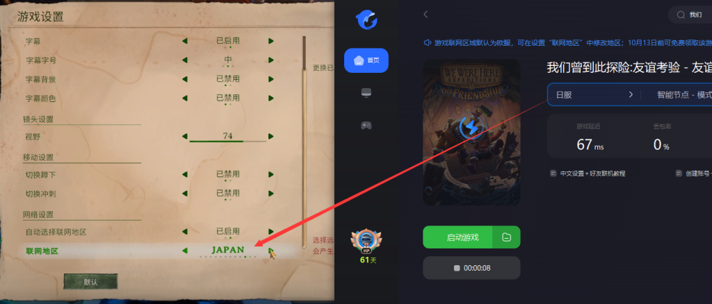《我们曾到此探险:友谊考验》的延迟是跟区服有关的,经过测评为大家找到了延迟低的区服,建议各位把联网地区选为印度(INDIA)