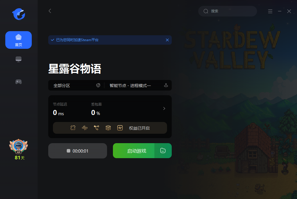 1、为了避免游戏无法联机,游戏卡顿,进入游戏前,大家可以下载开启海豚加速器来加速《星露谷物语》,加速后游戏会更流畅。