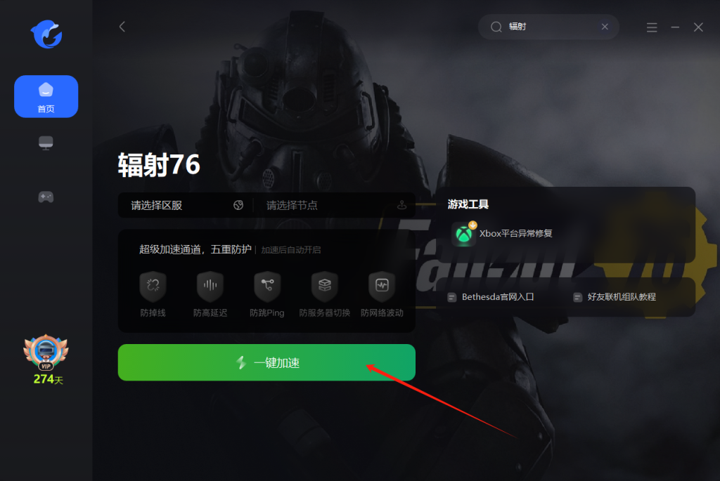 1. 打开海豚加速器,加速 “Amazon Prime”或“辐射76”