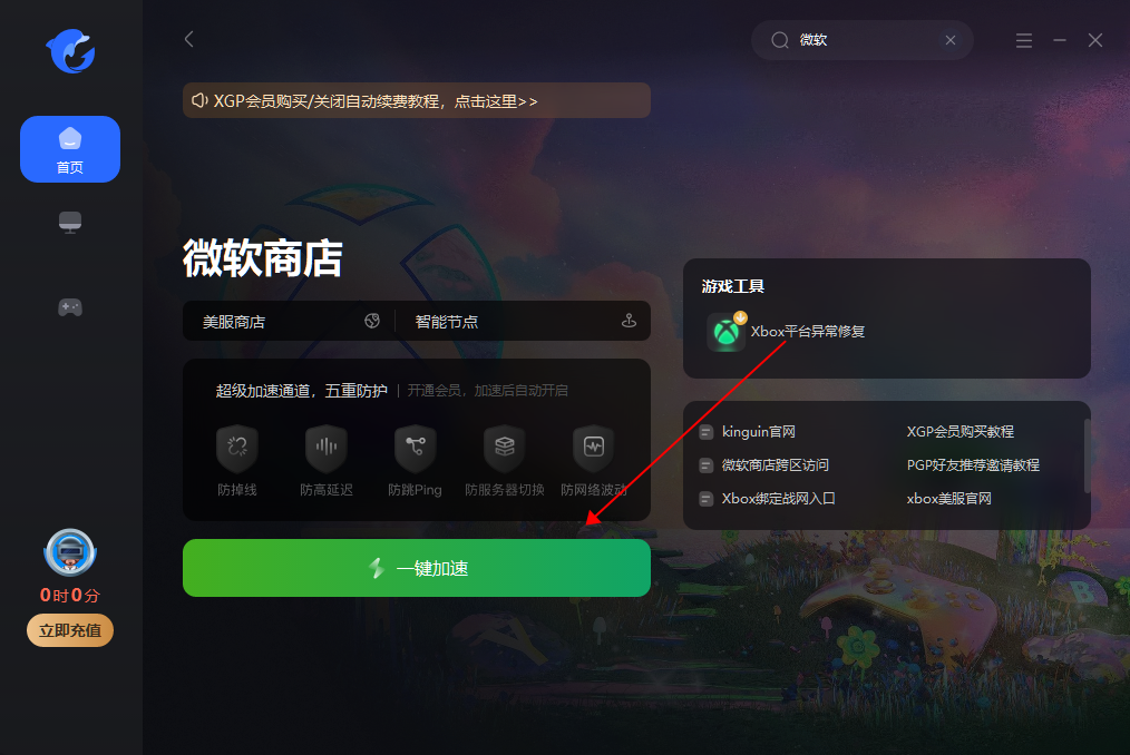 1. 打开海豚加速器,进入【微软商店】加速页面并选择美服商店;