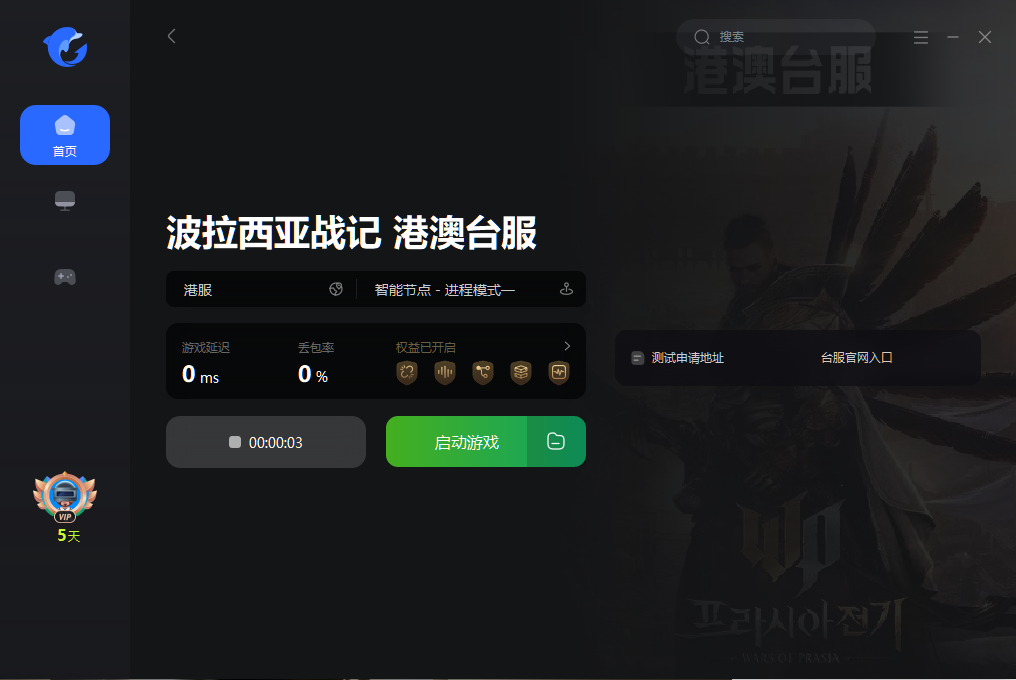 1. 打开海豚加速器搜索《波拉西亚战记 港澳台服》开启一键加速;